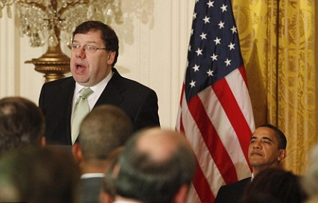 滿臉笑容的奧巴馬重返發(fā)言臺(tái)準(zhǔn)備解圍,不過(guò)字幕機(jī)內(nèi)容此時(shí)碰巧又切換成愛(ài)爾蘭總理的演講,奧巴馬竟然又跟著字幕讀了考恩的講演內(nèi)容,即感謝奧巴馬總統(tǒng)邀請(qǐng)所有人來(lái)白宮參加圣帕特里克節(jié)的慶;顒(dòng)。奧巴馬是一位很出色的講演者,但由于在發(fā)表講演時(shí)借助字幕機(jī),在美國(guó)被稱為“字幕機(jī)”總統(tǒng)。
