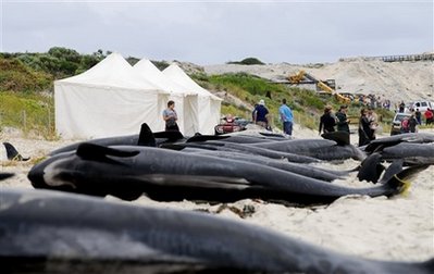 專家稱,澳大利亞不時有鯨魚擱淺,但是有鯨魚和海豚同時擱淺卻不太正常。今年3月初曾發(fā)生200多只鯨魚和海豚同時擱淺澳大利亞海灘的事件。