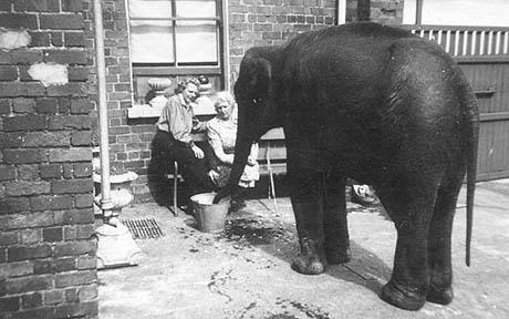 二戰(zhàn)中,貝爾法斯特當(dāng)?shù)鼐鞛榱朔乐罐Z炸造成動物逃跑傷人,共槍殺了23只動物,包括一只老虎、一只黑熊、一只猞猁、一只鬣狗、兩只北極熊和六只狼。而這只大象幸運(yùn)的被一位婦女發(fā)現(xiàn),并被藏于婦女家中得以逃生。