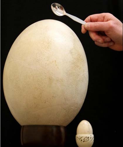 大象鳥比現(xiàn)在的鴕鳥還要大,17世紀(jì)在非洲滅絕。大象鳥蛋平均約1.76公斤,相當(dāng)于200只雞蛋那么重。