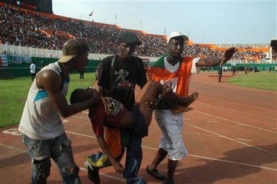 科特迪瓦內(nèi)政部長(zhǎng)塔戈羅表示,在科特迪瓦隊(duì)主場(chǎng)對(duì)陣馬拉維隊(duì)的比賽開始前,球迷互相推搡,最后爆發(fā)騷亂,發(fā)生踩踏事件。塔戈羅稱:“因?yàn)楸荣惣磳㈤_始,球迷們爭(zhēng)搶著入場(chǎng),每個(gè)人都想進(jìn)去(導(dǎo)致事故發(fā)生)!