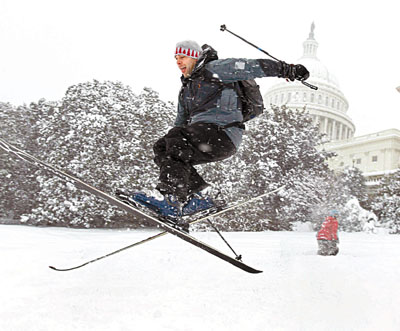 華盛頓地區(qū)刮起時(shí)速40英里的寒風(fēng),使白雪在空中亂飄,冷風(fēng)效應(yīng)更使氣溫降至約攝氏零下6度。氣象專家稱,華盛頓的大雪達(dá)40厘米,是自1932年以來12月的最大降雪量。美國總統(tǒng)奧巴馬前日凌晨乘專機(jī)從哥本哈根返回華盛頓,在抵達(dá)華盛頓市郊的安德魯斯空軍基地時(shí)遇上了大雪。由于天氣十分惡劣,奧巴馬改為乘坐專車返回白宮,而不是按慣例坐“海軍陸戰(zhàn)隊(duì)一號”直升機(jī)。紐約亦受暴風(fēng)雪吹襲,昨天早上積雪達(dá)28厘米,一班列車受風(fēng)雪影響中途停駛,150名乘客一度滯留車廂內(nèi)5小時(shí)。