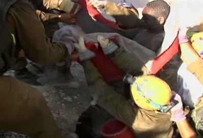 中新網1月23日電 綜合外電報道,海地再次上演生命奇跡,一名老年女性與一名年輕男性,在海地地震廢墟中被埋長達10天后,于22日被成功救出。