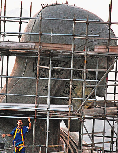 中新網(wǎng)4月18日電 據(jù)香港《文匯報(bào)》報(bào)道,巴西里約熱內(nèi)盧連日豪雨觸發(fā)泥石流,多處地方坍塌,當(dāng)局暫時(shí)關(guān)閉地標(biāo)耶穌山,在耶穌像周圍筑起棚架,為這個(gè)世界七大奇景之一進(jìn)行修葺。怎料,有人闖入用黑色噴漆在雕像頭、胸和手涂鴉,寫上暗喻暴力和犯罪的字句,如“貓兒不在,老鼠出擊”等。