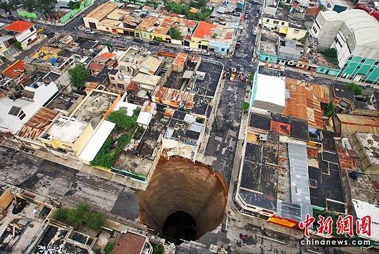 此外,受連場暴雨影響,危地馬拉城一處出現(xiàn)地面下陷,形成一個(gè)深60米、直徑30米的地洞。據(jù)報(bào)道,這個(gè)巨大地洞吞噬了一幢3層高大廈,1人死亡。