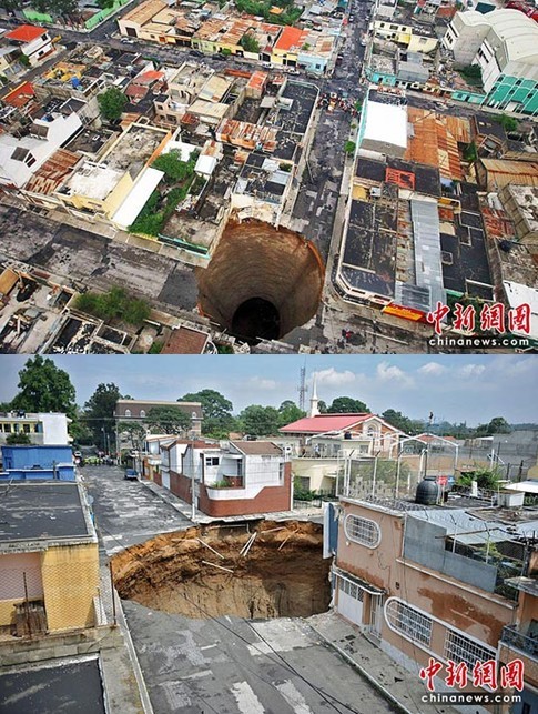 5月31日,熱帶暴風(fēng)雨“阿加莎”在危地馬拉首都危地馬拉城市區(qū)路面造成一個(gè)深60米、直徑30米的巨洞。專家認(rèn)為,填洞并非根本解決之道,如果不改善地下的管線埋設(shè)問題,類似巨洞可能將再出現(xiàn)。
