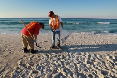 墨西哥灣海岸官員表示,佛州西北部海水與沙灘中已經(jīng)都被染上油污。當?shù)囟鄠海灘下達了游泳禁令。佛州官員已加大力度投入清理工作,阻止油污進一步擴散。