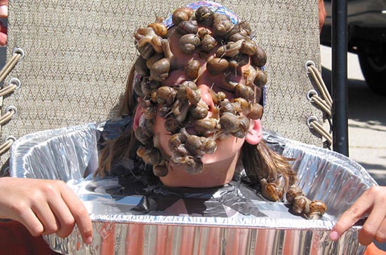 但這都無(wú)所謂,因?yàn)榉页晒Φ淖?3只濕滑滑的蝸牛在他的臉上停留的時(shí)間超過(guò)了10秒。