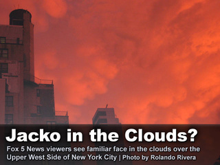 中新網(wǎng)6月30日電 美國紐約26日下了一場大雷雨,在下雨之前,天空出現(xiàn)罕見的紅色云朵,許多紐約客紛紛走到戶外,觀看這個(gè)大自然奇景。對于云的形狀,有人說像是外星人來了,更有人繪聲繪影地說,在云朵中看到25日去世的流行音樂天王杰克遜。