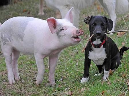 中新網(wǎng)10月24日電 英國(guó)有一只體弱多病的小豬原本要被宰殺,后來(lái)被動(dòng)物庇護(hù)站人員救走。它慢慢長(zhǎng)大后,竟把自己當(dāng)成狗,其行為舉止都跟狗沒(méi)有什么差別,并且與其它小狗成了好朋友。