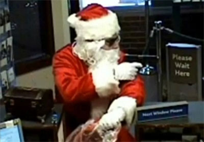 中新網(wǎng)12月24日電 據(jù)英國媒體報道,美國一名男子打扮成慈祥的圣誕老人模樣背著一個大麻袋走入銀行,正在辦理業(yè)務(wù)的顧客一陣欣喜,以為他要為大家發(fā)禮物,沒想到這個“圣誕老人”竟然掏出一把槍,大喊一聲:搶劫了!