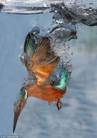 由于翠鳥的速度驚人、動作靈巧,而且水中的光線較不足,一般來說,要拍攝翠鳥捕魚的照片一點也不簡單。幸好聰明的業(yè)余攝影師艾德里‧安格羅夫斯懂得略施小計,在水池邊放了一個玻璃缸,里面放入幾條鯫魚,設(shè)法引誘翠鳥獵食,再伺機拍攝翠鳥捕魚的精彩瞬間。