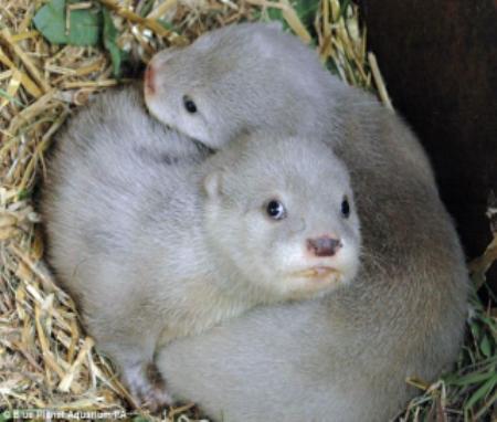 藍(lán)色星球水族館經(jīng)理湯姆.康威爾(Tom Cornwell)表示,一般情況下,動(dòng)物寶寶應(yīng)該會(huì)有與父母相同的體貌特征,但這兩只白色水獺寶寶的父母皮毛都為黑棕色。