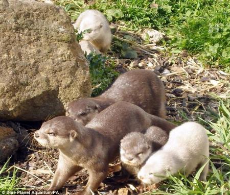 英國(guó)柴郡藍(lán)色星球水族館3月底誕生兩只水獺寶寶,但是它們的皮毛呈現(xiàn)白色,讓人不禁懷疑它們是否患有白化癥。