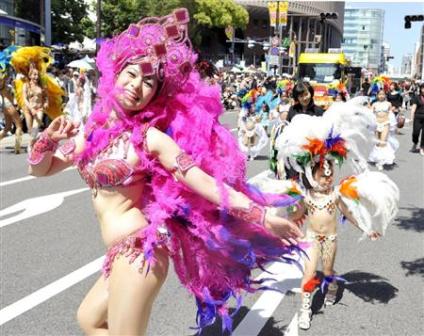 中新網(wǎng)5月17日電 據(jù)日本新聞網(wǎng)報(bào)道,日本著名的港口城市神戶市16日舉行了“神戶祭”(旅游文化節(jié))的最后狂歡。1萬多名市民穿著比基尼走上街頭,跳起了熱烈的桑巴舞。