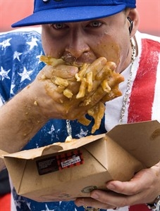 中新網(wǎng)5月24日電 據(jù)香港《星島日報》報道,來自芝加哥的帕圖奈堤在10分鐘內(nèi)吞下13磅拌有醬汁及芝士的薯條,于周六成為世界食薯條冠軍。