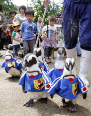 中新網(wǎng)6月11日電 據(jù)日本共同社網(wǎng)站報道,11日,身穿南非世界杯日本隊服的企鵝們出現(xiàn)在日本島根縣松江市的“松江 Vogel Park”公園,為出征世界杯的日本選手“吶喊助威”。