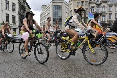 中新網(wǎng)6月20日電 據(jù)外電報(bào)道,19日,數(shù)十名比利時(shí)人赤身裸體,迎著風(fēng)雨上街騎自行車,抗議布魯塞爾市內(nèi)汽車太多,占用公共空間。