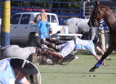 雖然說是慈善賽,但身為馬球選手,還擁有馬球隊(duì)的哈里王子,當(dāng)天打得非常認(rèn)真,也因?yàn)槿绱,?dāng)他試圖搶球時(shí),沒有注意到彎度過大,馬身極度傾斜,最后,馬匹打滑摔倒,他也就因此從馬背上落下。