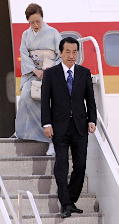 媒體打趣的稱,菅直人做不到他前任鳩山首相夫婦手拉手高調(diào)下飛機(jī)的浪漫,但是沒把夫人扶下舷梯,估計(jì)回到賓館免不了一頓收拾。