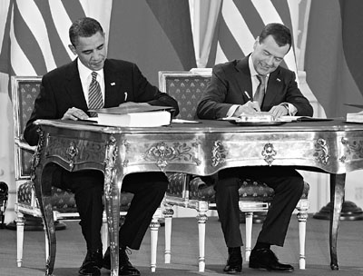 美國總統(tǒng)奧巴馬簽署后,形容這是向“無核武世界”邁出重要一步。俄羅斯總統(tǒng)梅德韋杰夫表示,這是一份雙贏協(xié)議,為俄美合作掀開新一頁。