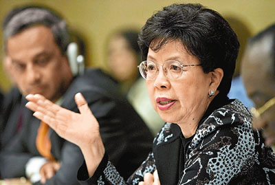 據(jù)香港《文匯報》報道,陳馮富珍在日內(nèi)瓦的世衛(wèi)年會上說:“當我看見更多來自病毒本身和疾病蔓延的跡象,我必然會作出一個困難的決定,不會危及全球人的健康。”