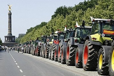 據(jù)香港《文匯報(bào)》報(bào)道,在法國,多達(dá)1.2萬名奶農(nóng)封鎖全國81家乳制品加工廠入口、德國6000名奶農(nóng)駕駛700部拖拉機(jī)到柏林示威、1000名來自法、德、比利時(shí)等10國的奶農(nóng)則在歐盟總部布魯塞爾堵塞道路。雖然法國政府任命專員調(diào)停奶農(nóng)及加工商,但工會揚(yáng)言要將示威浪潮擴(kuò)展到整片歐洲大陸。