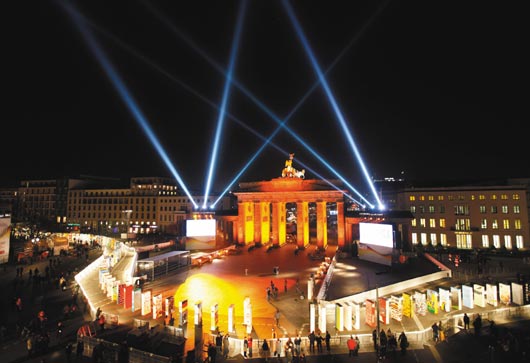 這一切慶;顒佣急炔簧20年前那種歷史性的歡樂。那場狂歡盛況空前,從9日圍墻倒塌開始,4天內(nèi)有超過300萬東德人造訪西德,西柏林商店通宵營業(yè)。
