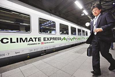 一列載有450名氣候變化大會代表、聯(lián)合國官員和非政府組織成員的“氣候快車”,經(jīng)過10多個小時的行程后,5日晚終于抵達丹麥首都哥本哈根,為今次峰會拉起帷幕。