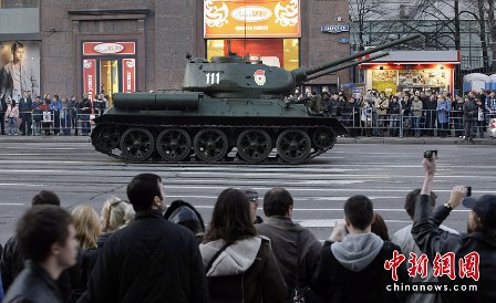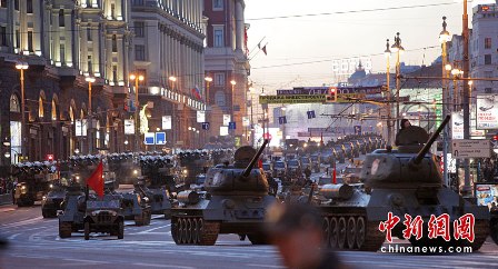 據(jù)報道,27日,俄羅斯出動約159輛軍用車輛及1萬多名軍人,進行了關(guān)于今年5月9日俄羅斯衛(wèi)國戰(zhàn)爭“勝利日”65周年時,紅場閱兵儀式的彩排活動。此次閱兵分為兩部分:歷史部分和現(xiàn)代部分。歷史部分由身穿衛(wèi)國戰(zhàn)爭時期軍服的士兵游行,同時還會有9輛T-34坦克和8輛SU-100自行火炮進行在游行隊伍當(dāng)中,F(xiàn)代部分則由13輛老虎裝甲車、BTR-80裝甲車、BMP-3步兵戰(zhàn)車、T-90A坦克和S-400防空系統(tǒng)等組成。
