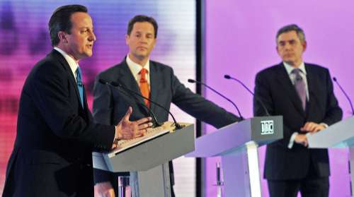 中新網(wǎng)5月1日電 英國三大政黨黨魁二十九日進(jìn)行大選之前最后一次電視辯論。據(jù)香港大公網(wǎng)報(bào)道,民調(diào)顯示保守黨黨魁卡梅倫得分最高。幾個(gè)電視臺(tái)在辯論結(jié)束后對(duì)民眾的即時(shí)調(diào)查發(fā)現(xiàn),至少三分一選民仍然未能決定支持那一政黨,電視辯論可增強(qiáng)選民對(duì)黨魁和各黨政策的了解,但不見得有哪里一黨通過電視辯論令大多數(shù)選民信服。