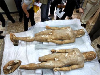 中新網(wǎng)5月19日電 據(jù)外電18日報道,希臘警方日前逮捕了兩名膽大包天的盜墓賊,這兩人涉嫌將盜來的一對2500年前的大理石雕像以100萬歐元的價格出售。