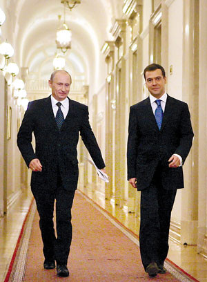 自2008年以來(lái),梅德韋杰夫和普京各司其職,前者主要負(fù)責(zé)外交政策,后者則專注處理國(guó)內(nèi)事務(wù),特別是經(jīng)濟(jì)問(wèn)題。