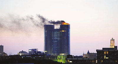 當(dāng)時(shí),其中一座塔樓最高的兩層率先起火,大批消防人員趕到現(xiàn)場(chǎng)撲救。2小時(shí)后,一個(gè)氣體燃料罐爆炸,消防員被迫撤退,其后從旁邊另一座塔樓向火場(chǎng)噴射水柱滅火,火勢(shì)在當(dāng)?shù)貢r(shí)間早上6時(shí)半左右得到控制。