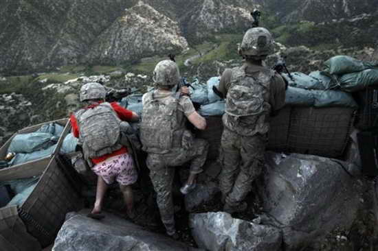 美聯(lián)社的一名攝影記者抓拍的一張照片顯示,19歲的陸軍專業(yè)軍士扎查里伊-波伊德在位于阿富汗庫(kù)納爾省科里加爾山谷的雷斯特雷波火力基地內(nèi)進(jìn)入防御陣地,基地當(dāng)時(shí)遭到了塔利班的火力射擊。他當(dāng)時(shí)穿著一件四角內(nèi)褲,內(nèi)褲上印著彩紅色的“我愛紐約”字樣!都~約時(shí)報(bào)》12日在其頭版刊登了這張照片。