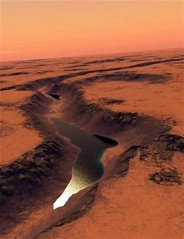 據(jù)報(bào)道,美國科學(xué)家認(rèn)為火星上的這個(gè)湖泊形成于34億年前,總面積達(dá)207平方公里,最深處達(dá)500米。但是目前還不清楚湖泊為何會消失。