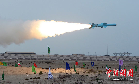 25日,革命衛(wèi)隊(duì)的導(dǎo)彈部隊(duì)從陸上和海上不同地點(diǎn)發(fā)射了2枚艦對(duì)艦和3枚岸對(duì)艦導(dǎo)彈,這些導(dǎo)彈均同時(shí)擊中海上同一目標(biāo)。與此同時(shí),60艘快艇組成6支攻擊編隊(duì),通過發(fā)射107毫米口徑制導(dǎo)火箭彈,也成功使一艘大型戰(zhàn)艦失去戰(zhàn)斗力。伊朗國家電視臺(tái)解說道,“在預(yù)定時(shí)刻,數(shù)枚反艦導(dǎo)彈如利劍一般率先從陸地發(fā)射車上迸射而出……我方所有雷達(dá)全部開機(jī),雷達(dá)屏幕顯示海面上的快艇也向目標(biāo)艦施放了導(dǎo)彈,在遠(yuǎn)處高地觀戰(zhàn)的戰(zhàn)士們目睹多枚導(dǎo)彈在天空劃出一道道白色弧線,準(zhǔn)確飛向海平面深處的目標(biāo)。”