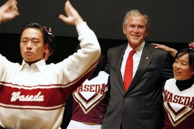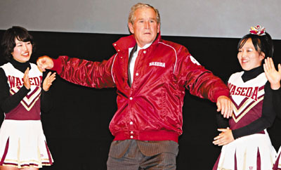 中新網(wǎng)11月5日電 據(jù)美國媒體報道,4日,在奧巴馬當(dāng)選美國總統(tǒng)整整一周年之際,小布什卻跑到日本向早稻田大學(xué)的師生大談棒球經(jīng)。