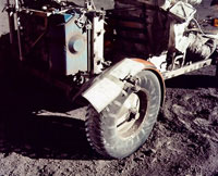 眾所周知,月球表面都被厚厚的月塵覆蓋,美國(guó)宇航員拍攝了很多他們?cè)谠虑蛏狭粝碌哪_印。月球和火星異,F(xiàn)象研究專家約瑟夫·斯金波對(duì)這些證據(jù)一直心存質(zhì)疑。從美國(guó)宇航員的照片上看,他們的月球車停靠在登陸艙很遠(yuǎn)的地方,圖片上沒有車轍痕跡,就好像那輛登陸車是從太空艙飛過去的。“我們當(dāng)然可以假設(shè)月球表面十分堅(jiān)硬,不足以讓登陸車留下痕跡?墒牵诘顷戃嚺赃厖s有很多腳印,甚至在登陸車的下面也能看到!