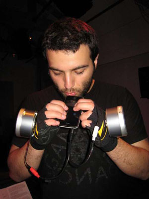 二十名樂團(tuán)團(tuán)員并不是一班鬧著玩的普通音樂系學(xué)生,他們都正在修讀一個名為“手機(jī)樂團(tuán)”的校內(nèi)課程,學(xué)習(xí)如何把iPhone改造成各種樂器。有了特定的應(yīng)用程序,加上內(nèi)置的全球定位系統(tǒng)(GPS)、數(shù)碼指南針和加速度計,用家只要用手指敲打屏幕、向擴(kuò)音器吹氣,便可奏樂。演奏時,iPhone會連上系在樂師的手腕上的揚聲器。