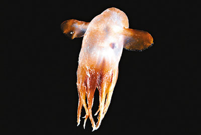 中新網(wǎng)11月24日電 由80個(gè)國家、逾2000名科學(xué)家進(jìn)行為期10年的海洋普查接近尾聲,科學(xué)家至今在深海已找到近1.8萬種海洋生物,其中包括一種章魚,長(zhǎng)有如象耳般的一對(duì)鰭,專家為它取名“大寶”,即迪士尼卡通《小飛象》的主角。