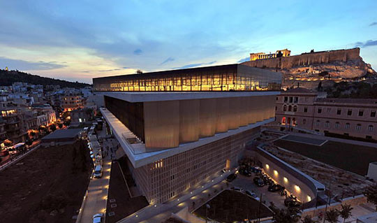 新衛(wèi)城博物館的設計考慮到如何更好地向外界展示鎮(zhèn)館之寶——巴特農(nóng)神廟外墻浮雕,新館頂層是根據(jù)雅典存留的巴特農(nóng)神殿而設計,重組雕于2500年前的大理石浮雕,目前流落大英博物館的部分浮雕則以仿制品替代。希臘政府希望借此面積大、設計新的新館,促使英國政府歸還兩塊巴特農(nóng)神廟外墻浮雕。