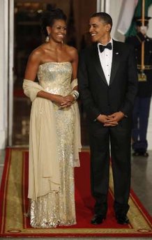 中新網(wǎng)11月25日電 據(jù)美國(guó)媒體報(bào)道,美國(guó)總統(tǒng)奧巴馬24日晚首次在白宮擺國(guó)宴款待外賓,“第一夫人”米歇爾身著華麗晚裝閃亮登場(chǎng),整個(gè)國(guó)宴就像一場(chǎng)炫目的晚會(huì)。