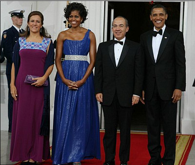在宴會上,奧巴馬與卡爾德龍為兩國友誼互相祝酒。此次國宴,奧巴馬夫婦再次邀請了他們喜歡的高級廚師里克•貝雷斯準(zhǔn)備菜肴。