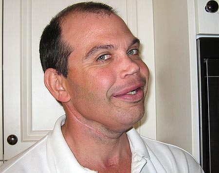 醫(yī)生截取其肋骨和臀骨植入面部,重塑鼻子和下巴;又以腿部動脈挪到頸部,手腕皮膚則移植到下臉部。經過連串手術,加萊格一年不能說話,其中兩周更不能飲食。他還要頻頻進入氧氣室,以刺激面部新血管生長。