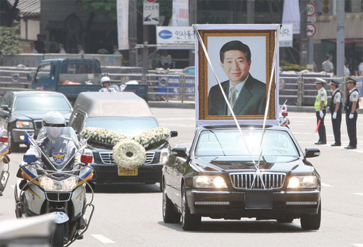 當(dāng)?shù)貢r(shí)間29日凌晨5時(shí),盧武鉉的出殯儀式結(jié)束后,靈車6時(shí)許離開慶尚南道金海市進(jìn)泳邑峰下村,4小時(shí)50分鐘后來(lái)到首爾。