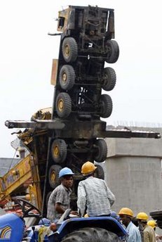 此前一天,該處地鐵施工工地發(fā)生高架橋坍塌事故,造成6人死亡、15人受傷。一天后,在該事故清理現(xiàn)場又發(fā)生了起重機(jī)倒塌事故,造成4人受傷。