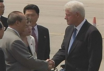 克林頓在平壤順安機(jī)場(chǎng)受到了朝鮮多位高官歡迎。