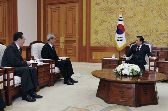 李明博從當(dāng)天上午9時(shí)開始接見朝鮮勞動黨中央書記金己男和統(tǒng)一戰(zhàn)線部部長金養(yǎng)建等一行,就最近的朝韓關(guān)系廣泛地交換了意見。