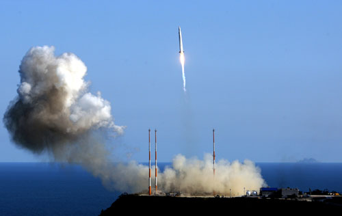 中新網(wǎng)8月25日電 綜合報(bào)道,韓國(guó)首枚運(yùn)載火箭“羅老”號(hào)(KSLV-I)在當(dāng)?shù)貢r(shí)間25日下午5時(shí)發(fā)射升空,數(shù)分鐘后韓國(guó)羅老衛(wèi)星發(fā)射中心宣布“羅老”號(hào)發(fā)射初步成功,捏著一把汗注視倒計(jì)時(shí)牌的市民歡呼雀躍。韓國(guó)總理韓升洙也通過(guò)電視對(duì)火箭發(fā)射的初步成功表示祝賀。但距離火箭發(fā)射約70分鐘后,韓國(guó)當(dāng)局宣布“羅老”號(hào)未能進(jìn)入目標(biāo)軌道,發(fā)射未能取得100%成功。